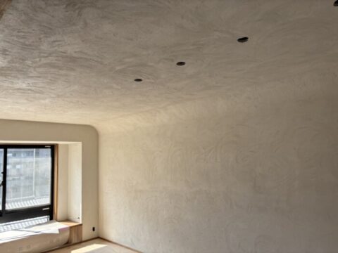 今回は、先日行いました外壁漆喰塗り、内装聚楽塗りのようすをご紹介いたします。